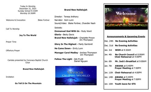 Coronaca Baptist Church Fall Festival has been moved to October 30, 2025. The time is from 6:00 to 7:30 P.M.